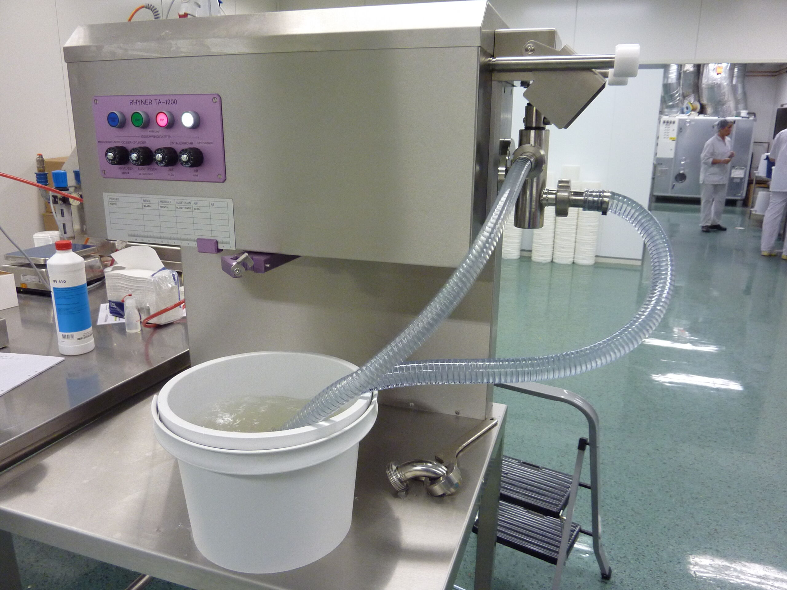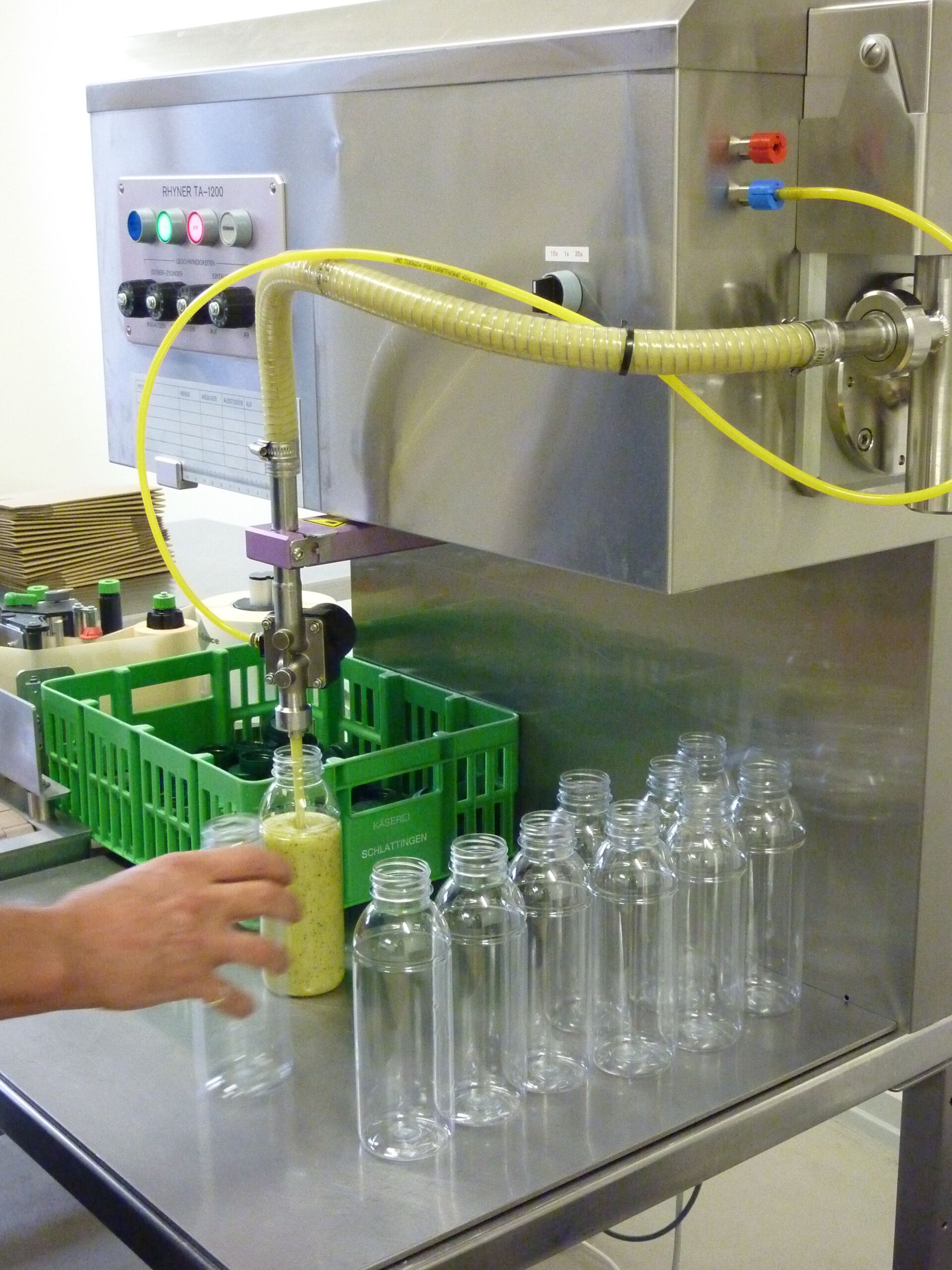 Mit dieser Maschine werden flüssige oder pasteuse, kalte oder heisse Produkte wie zum Beispiel Milch, Joghurt, Quark, Frischkäse, Fondue, Honig, Salatsaucen, Mayonnaise, Konfitüre, Kuchenteig, etc. abgefüllt.