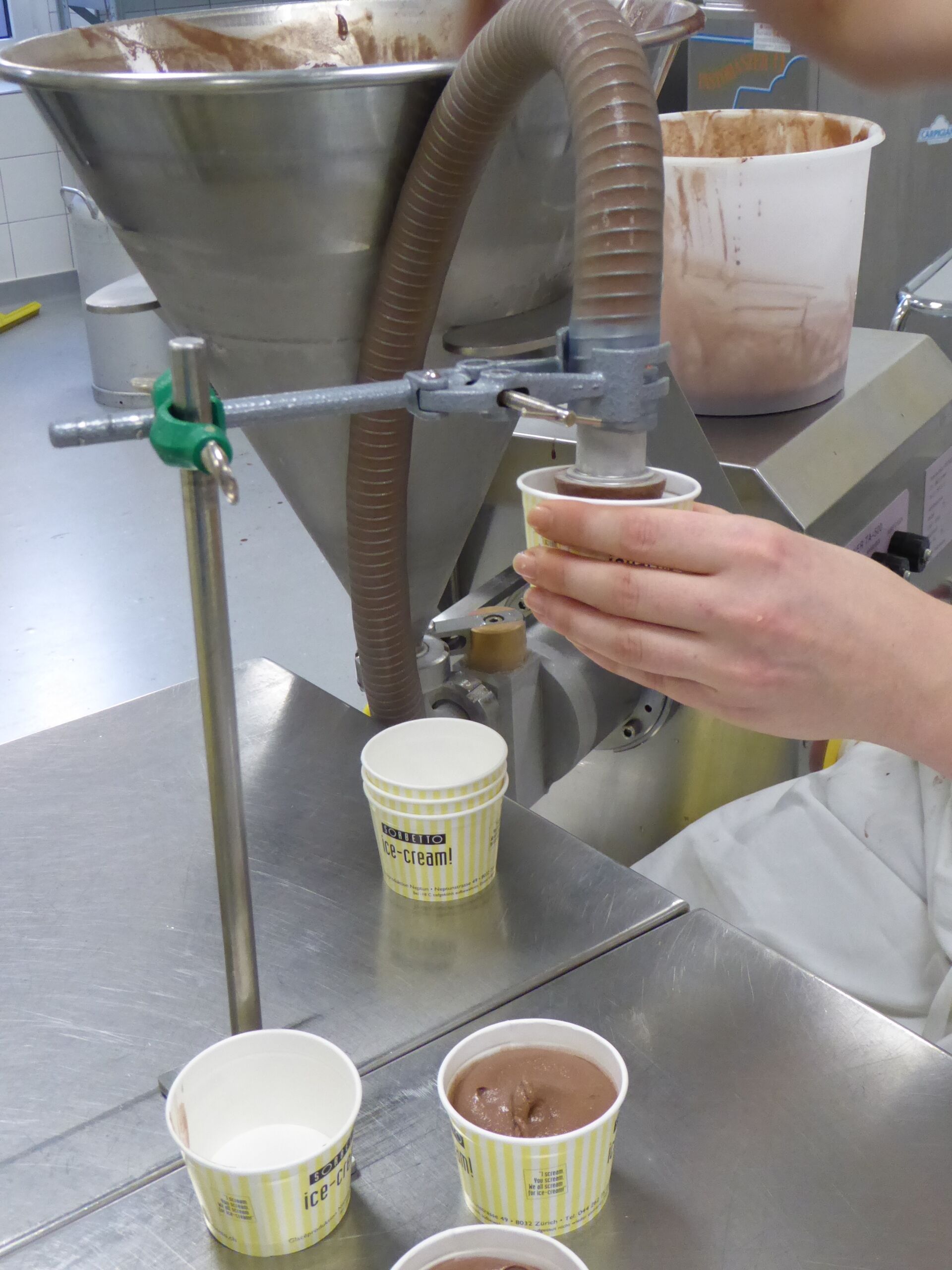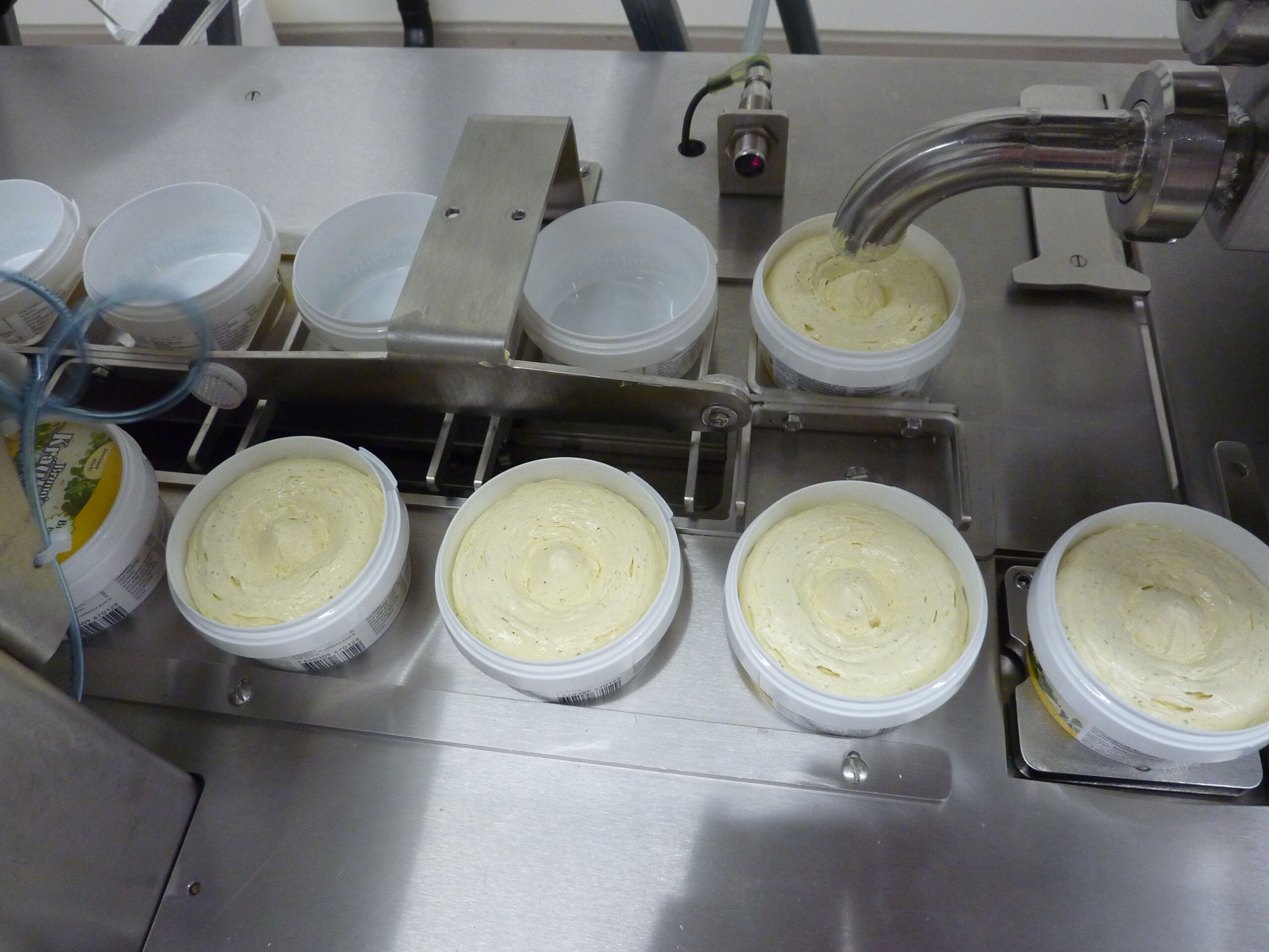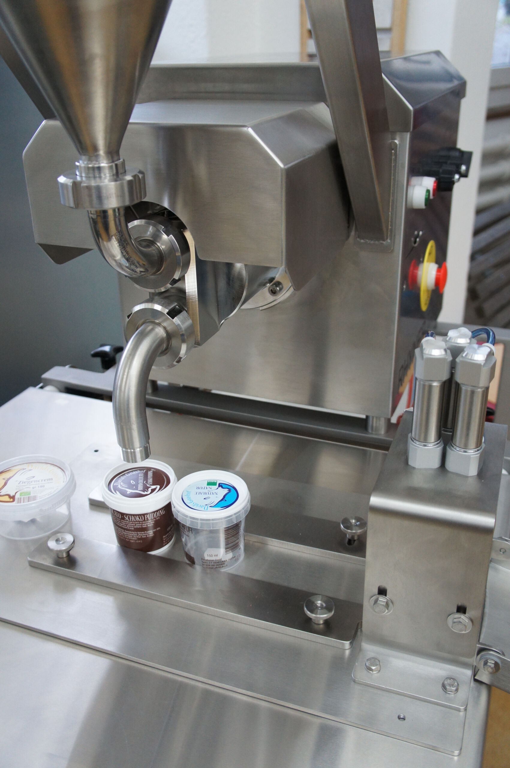 Mit dieser Maschine werden flüssige oder pasteuse, kalte oder heisse Produkte wie zum Beispiel Milch, Joghurt, Quark, Frischkäse, Fondue, Honig, Salatsaucen, Mayonnaise, Konfitüre, Kuchenteig, Glace etc. abgefüllt. Ist Ihr Produkt nicht aufgeführt? Fragen Sie uns an.