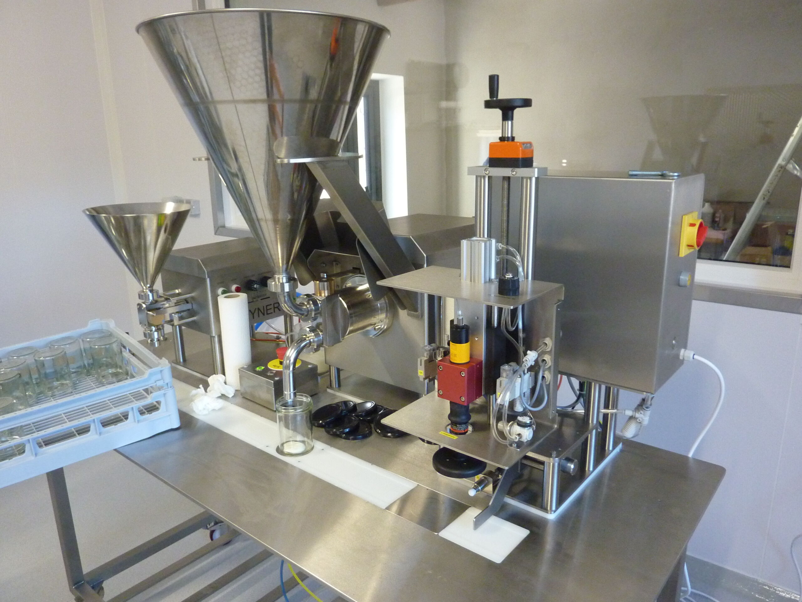 Diese Abfüllmaschine kann ergänzt bzw. erweitert werden bis hin zu einem Vollautomaten für Flaschen, Becher, Gläser, …